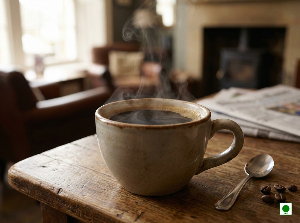 A comforting cup of hot black coffee aromatic, with a deep roasted taste that warms you from the first sip.