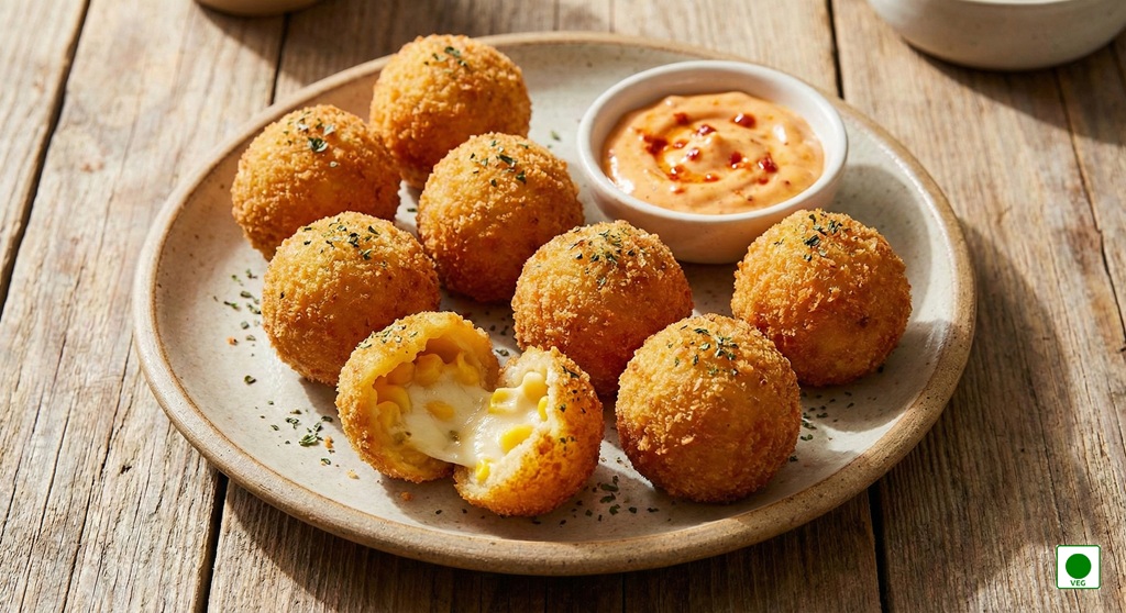Golden fried cheese and corn balls — crispy outside, soft and creamy inside.