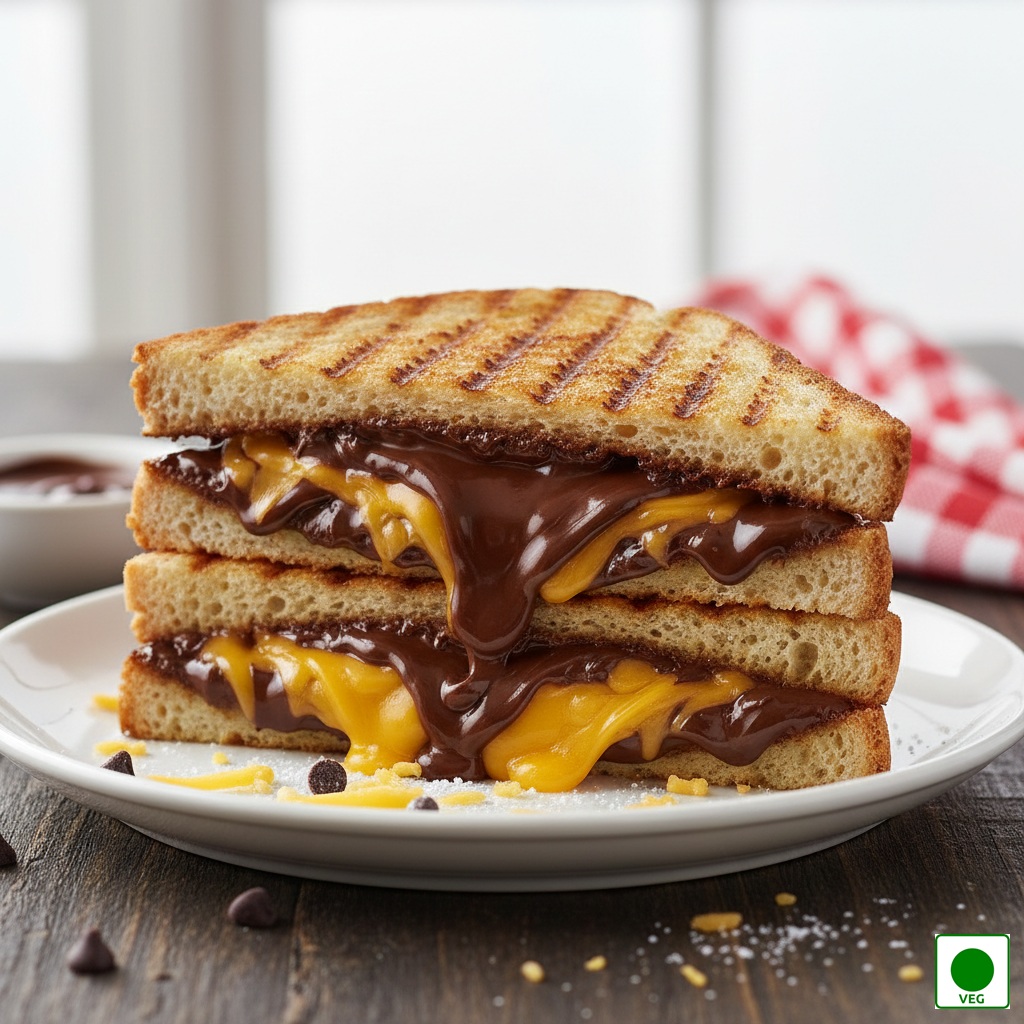 Grilled sandwich filled with creamy chocolate and melted cheese — rich, gooey, and deliciously indulgent.