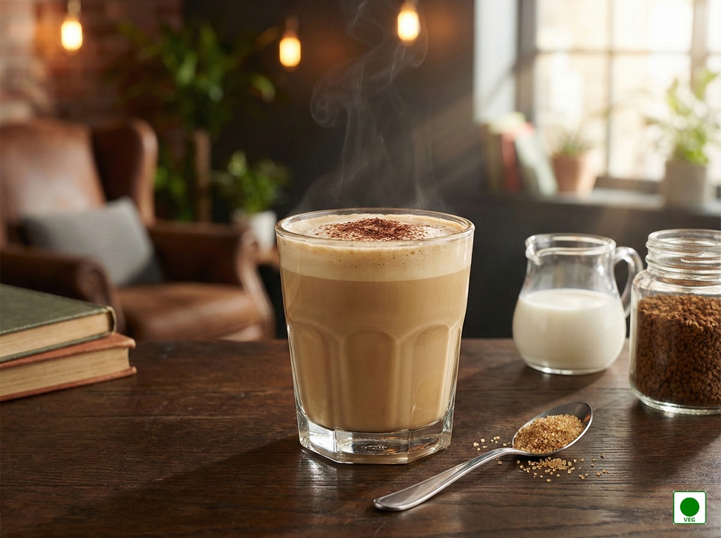 A warm, creamy cup of instant coffee blended with smooth milk and a touch of sweetness — comforting, rich, and perfectly mellow. Each sip feels like a soft hug, balancing gentle coffee flavor with milky softness and sugary warmth.