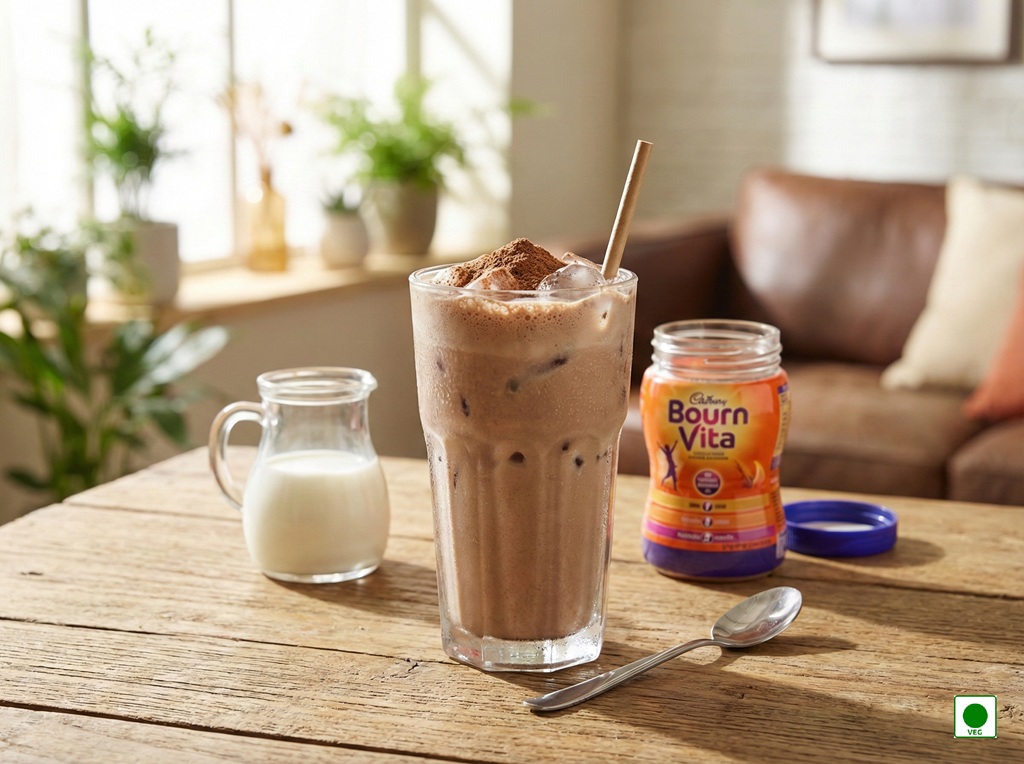 Chilled milk blended with rich chocolate Bournvita — smooth, refreshing, and deliciously nourishing.