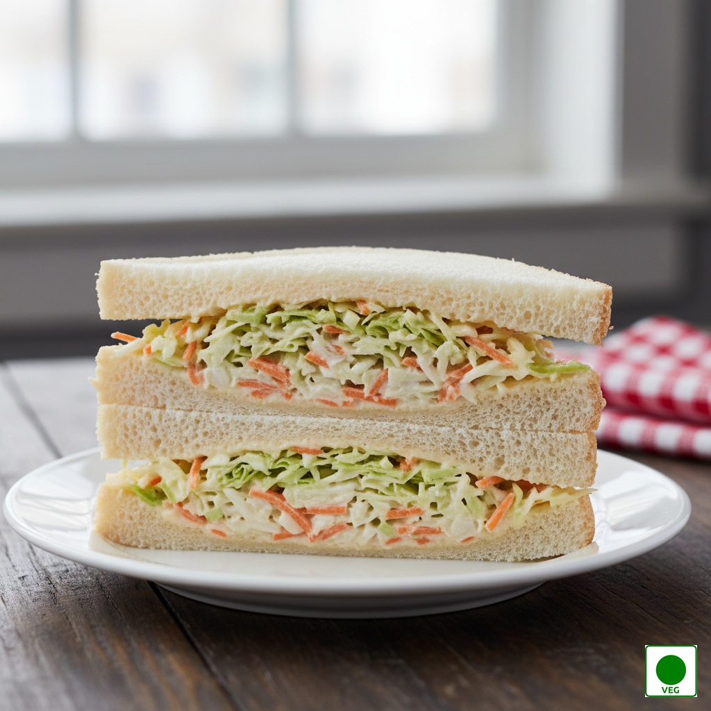 Creamy, crunchy coleslaw made with fresh cabbage and carrots, layered with smooth mayo and served in soft bread.