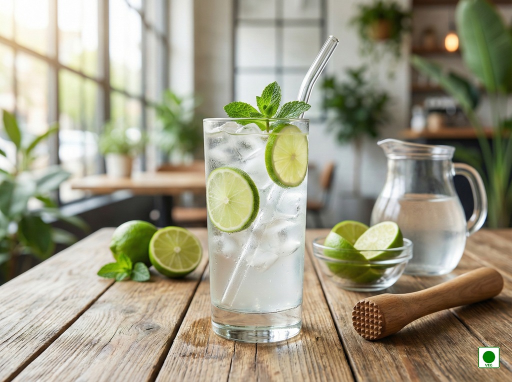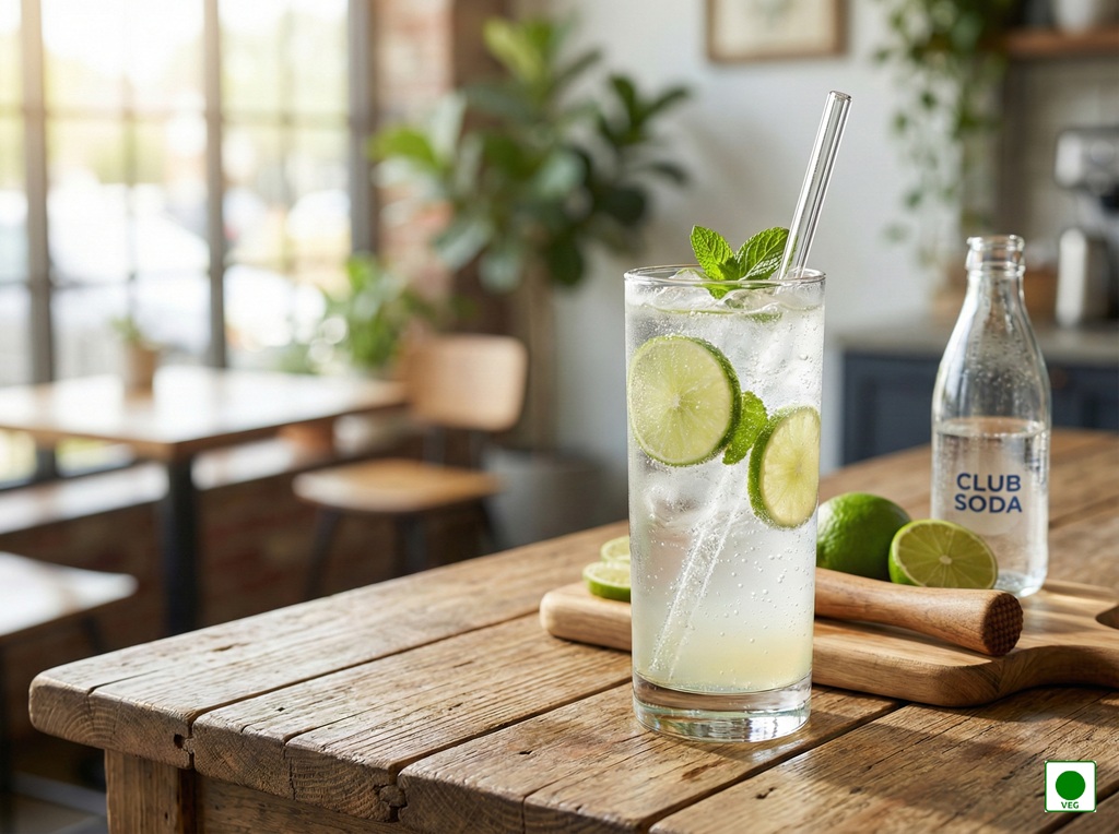 Freshly squeezed lime blended with chilled soda — fizzy, zesty, and instantly refreshing.”