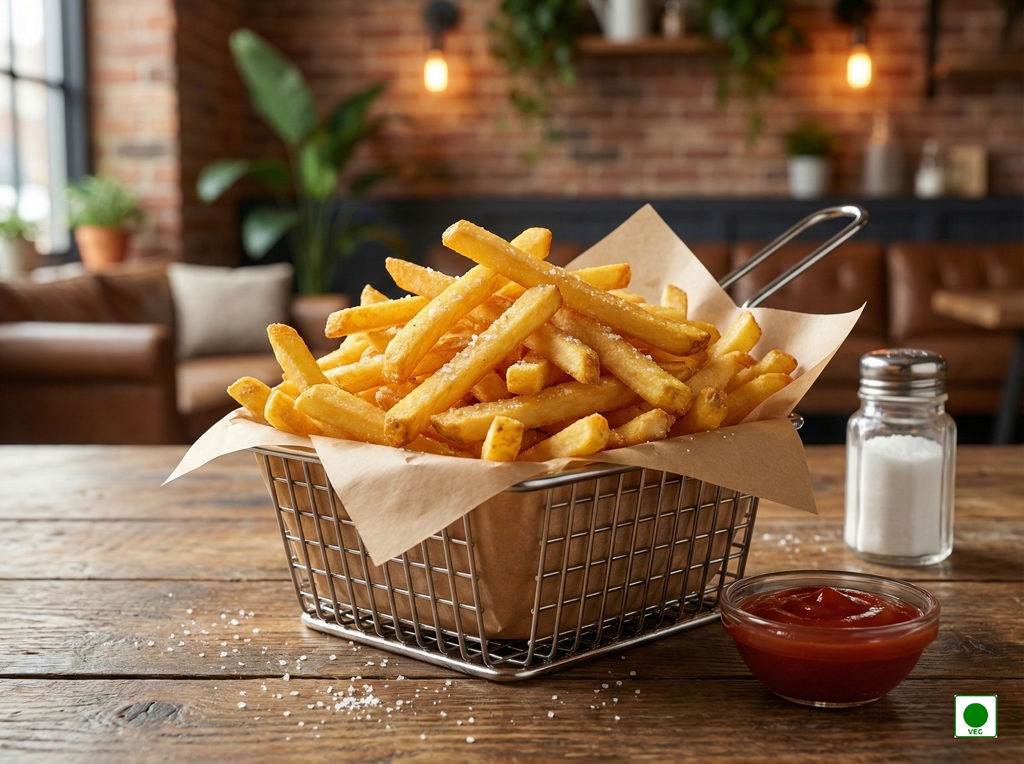Crispy French fries tossed in desi masala spices — spicy, tangy, and flavorful.