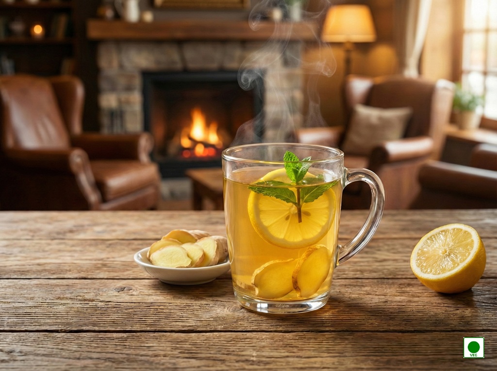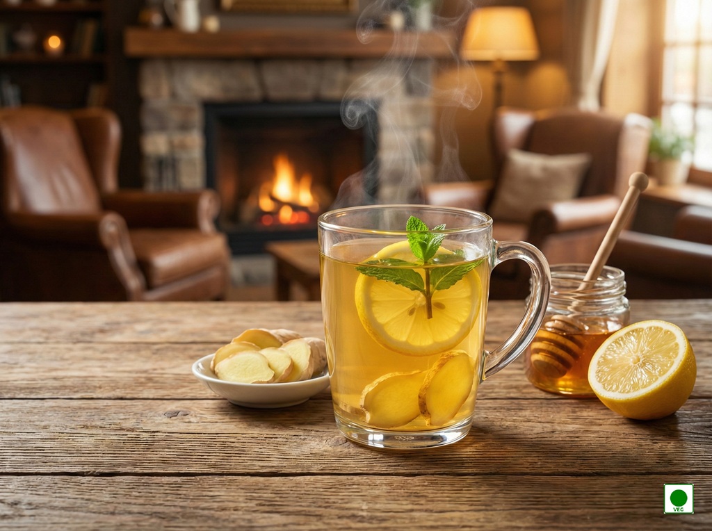 A comforting blend of hot tea, fresh ginger, natural honey, and zesty lemon — warming, soothing, and refreshing.