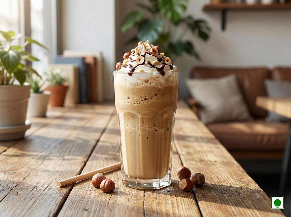Chilled coffee blended with creamy milk and rich hazelnut flavor — smooth, nutty, and irresistibly refreshing.