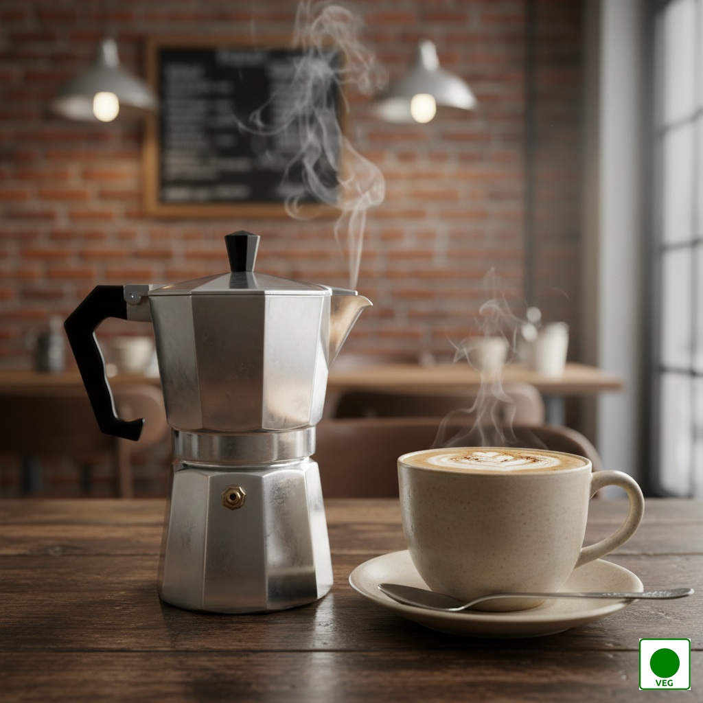 Rich stovetop-brewed coffee made in a traditional Italian Moka Pot — bold aroma, deep flavour, and smooth Italian-style intensity in every sip.