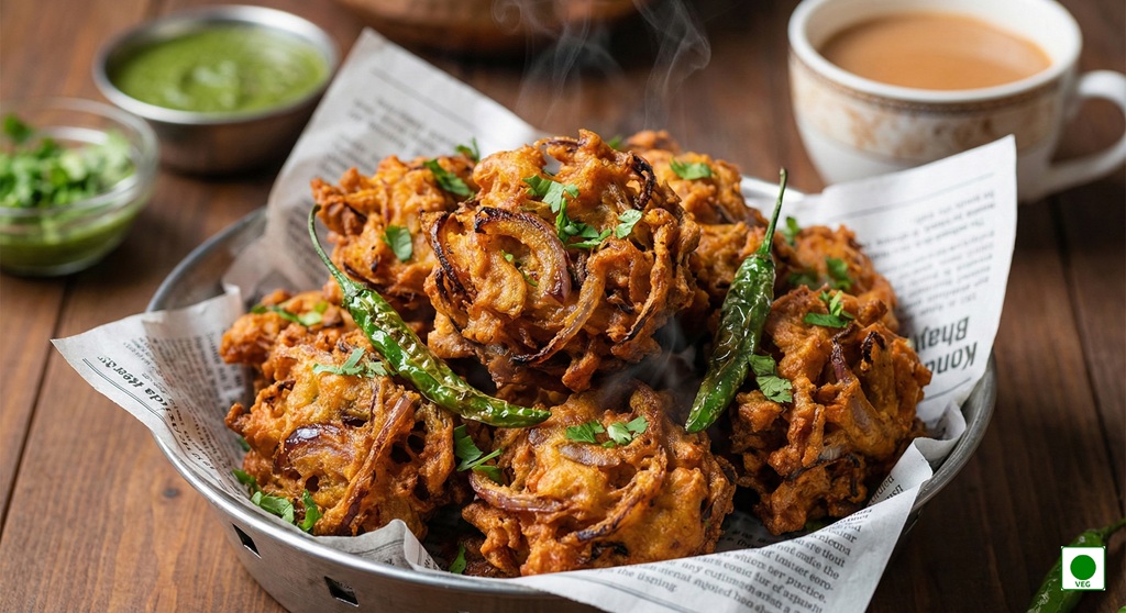 Crispy onion fritters deep-fried in spiced gram flour batter — crunchy, hot, and addictive.