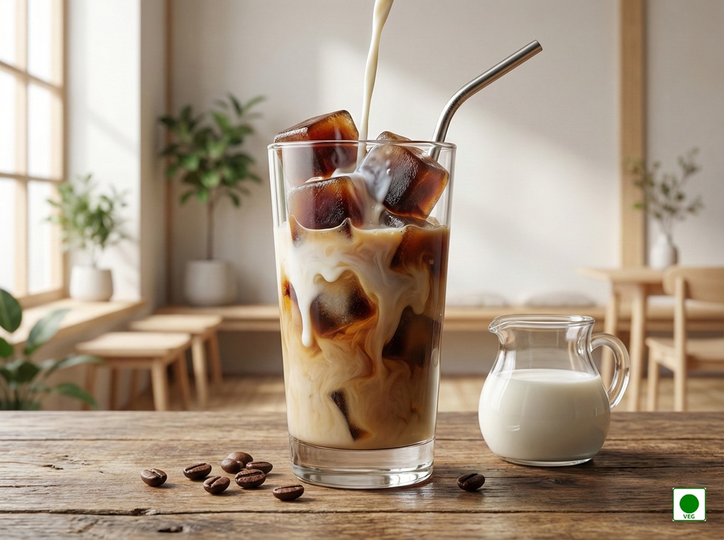 Chilled coffee blended with creamy milk and smooth vanilla flavor — light, sweet, and refreshingly smooth.