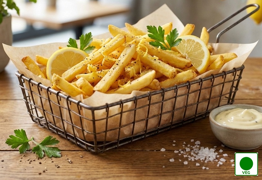 French fries seasoned with zesty lemon and cracked pepper — fresh, tangy, and bold.