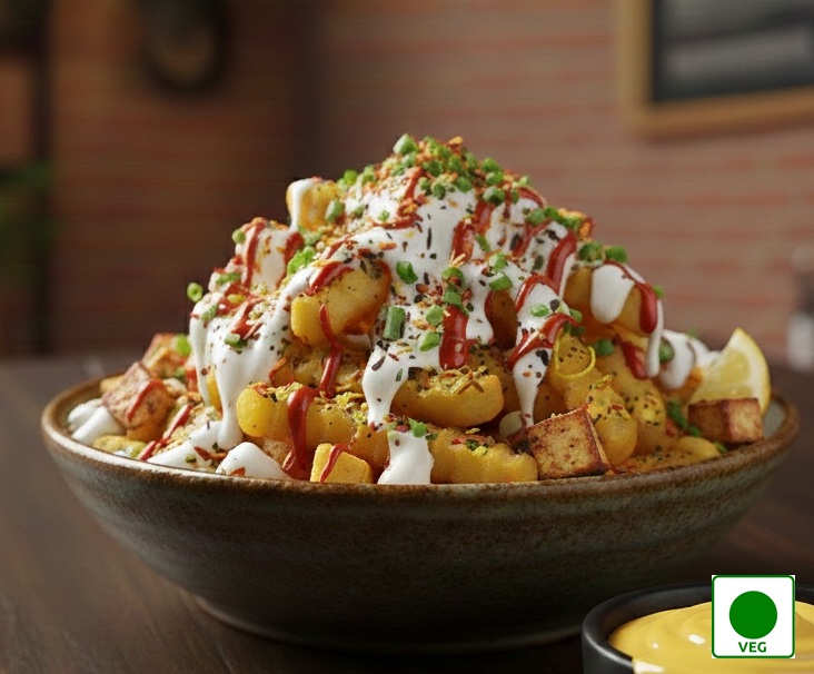 Fully loaded French fries with cheese, sauces, and toppings — rich, messy, and delicious.