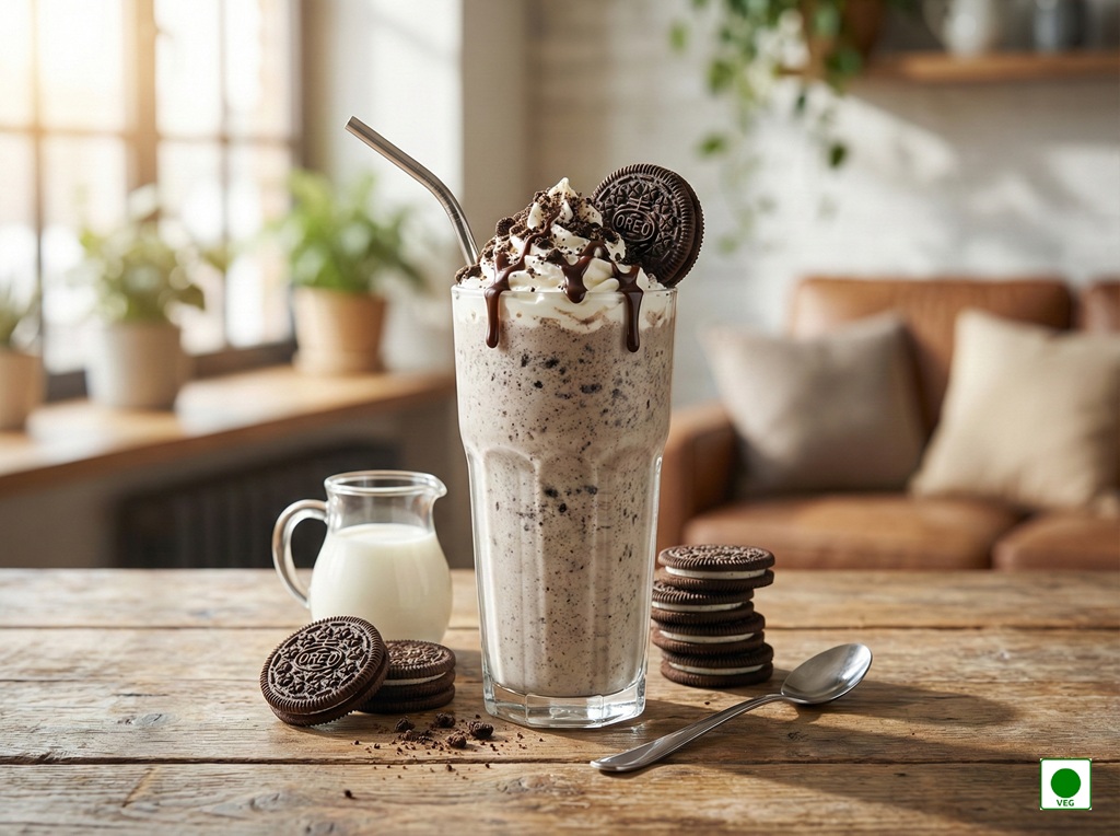 Crushed Oreo cookies blended with chilled milk — creamy, crunchy, and deliciously chocolatey.