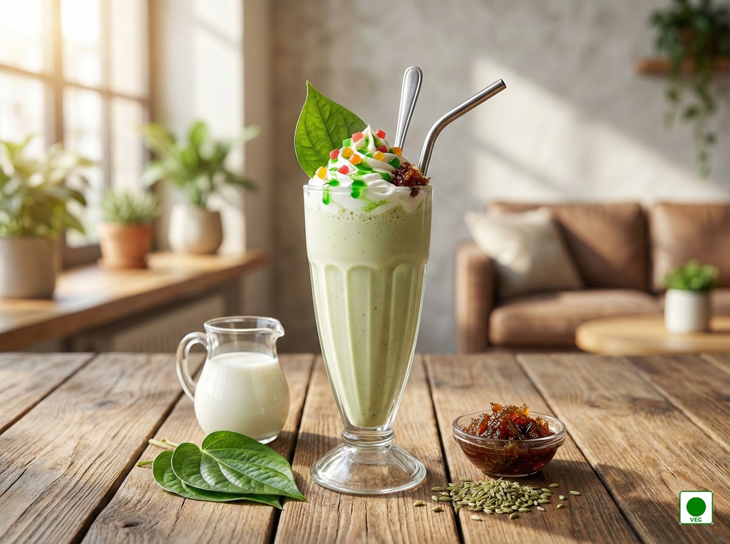 Traditional paan flavor blended with chilled milk — refreshing, aromatic, and unique.