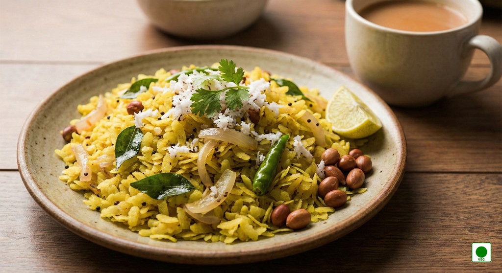 Light, fluffy flattened rice cooked with onions, mustard seeds, curry leaves, and mild spices — fresh and comforting.