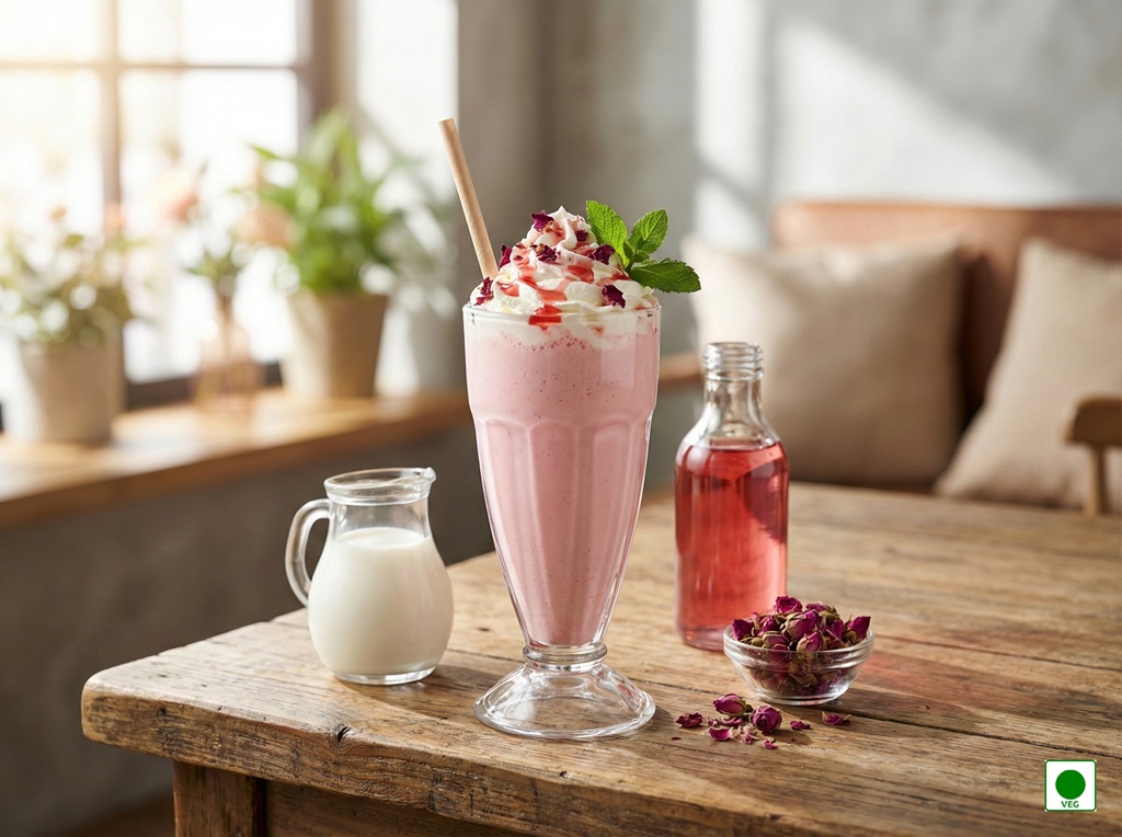 Chilled milk infused with fragrant rose syrup — smooth, floral, and soothing.