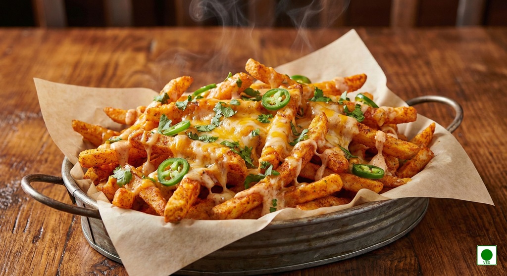 French fries tossed in tandoori spices and loaded with melted cheese — smoky, spicy, and cheesy.