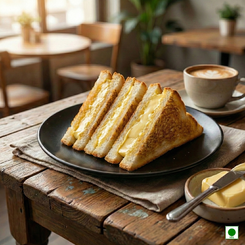 Toasted bread topped with butter and cheese — crunchy, warm, and delicious.