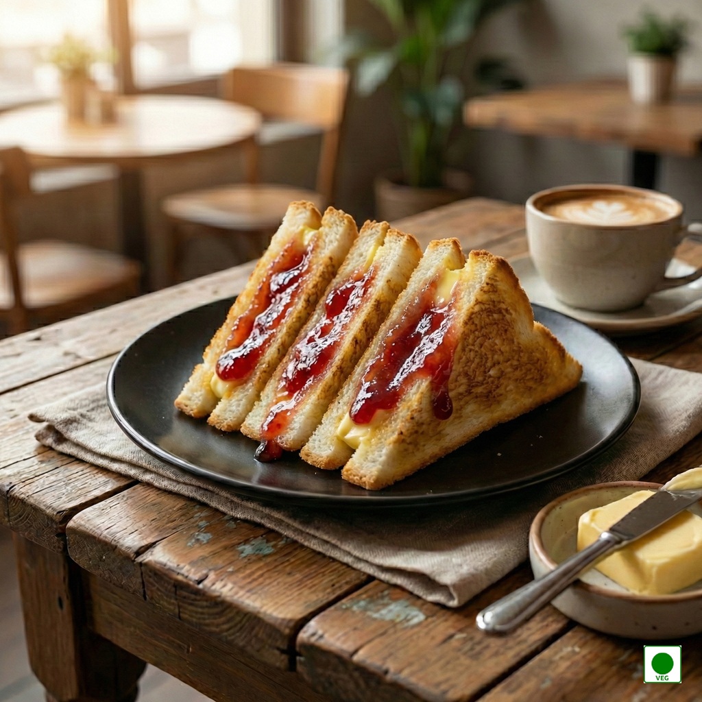 Bread layered with butter and fruity jam — sweet, soft, and classic.