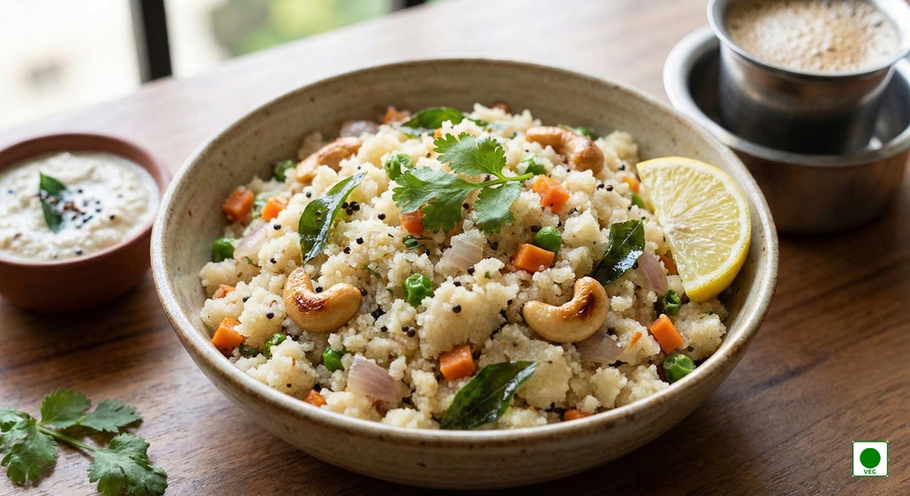 Savory semolina cooked with vegetables and spices — wholesome, light, and filling.