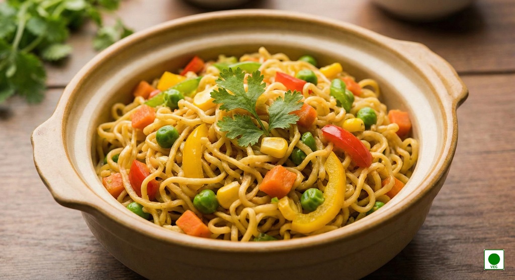 Maggie cooked with fresh vegetables and mild spices — healthy, colorful, and delicious.